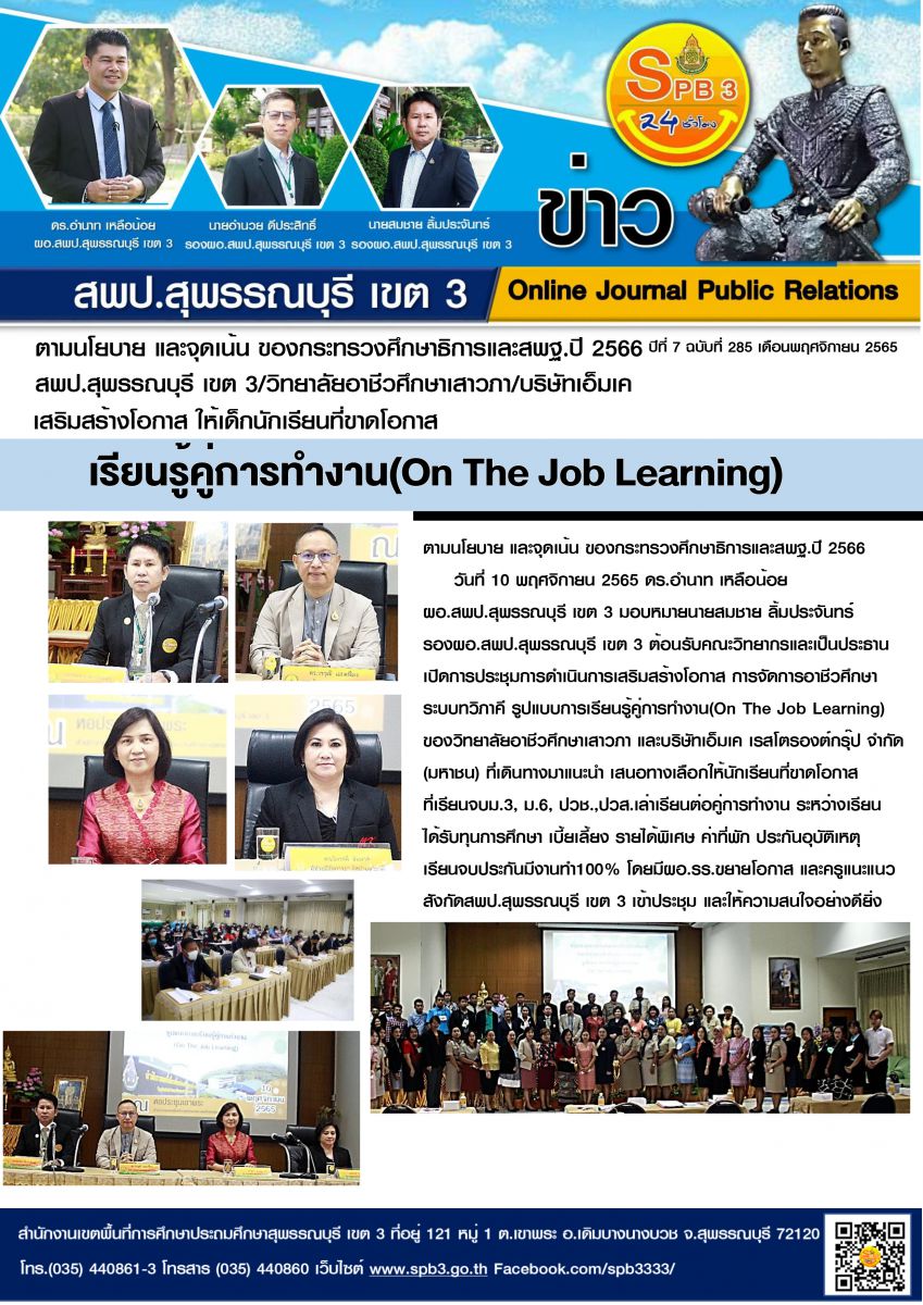 การดำเนินการเสริมสร้างโอกาสการจัดการอาชีพศึกษาระบบทวิภาคี รูปแบบการเรียนรู้คู่การทำงาน (On The Job Learning)