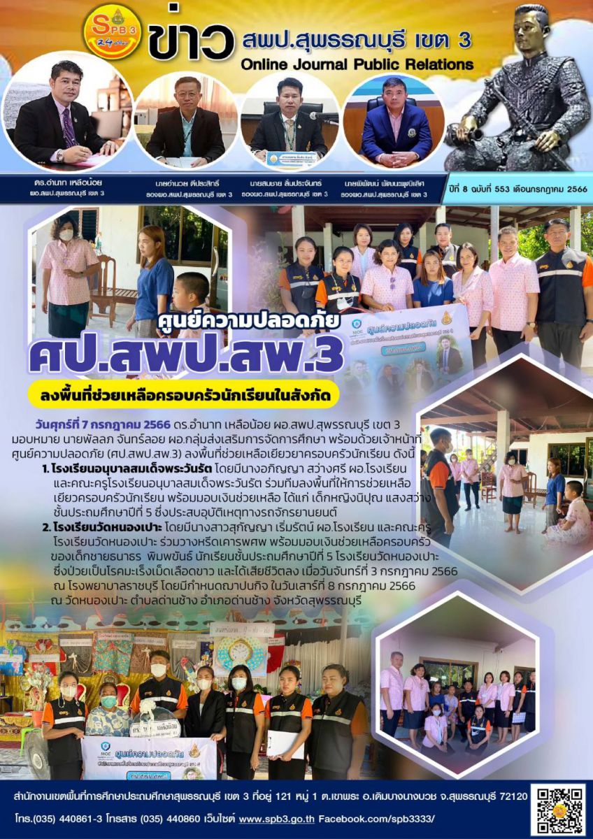ศป สพป สพ 3 ลงพื้นที่ช่วยเหลือนักเรียน